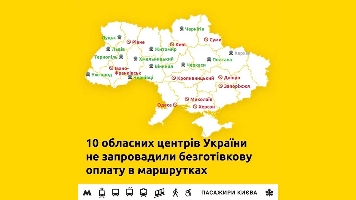 ГО «Пасажири Києва» дослідили ринок перевезень приватними перевізниками в обласних центрах України та з’ясували, що в багатьох містах уже впроваджено безготівкову оплату проїзду банківською карткою або карткою містянина навіть на маршрутах приватних перевізників.