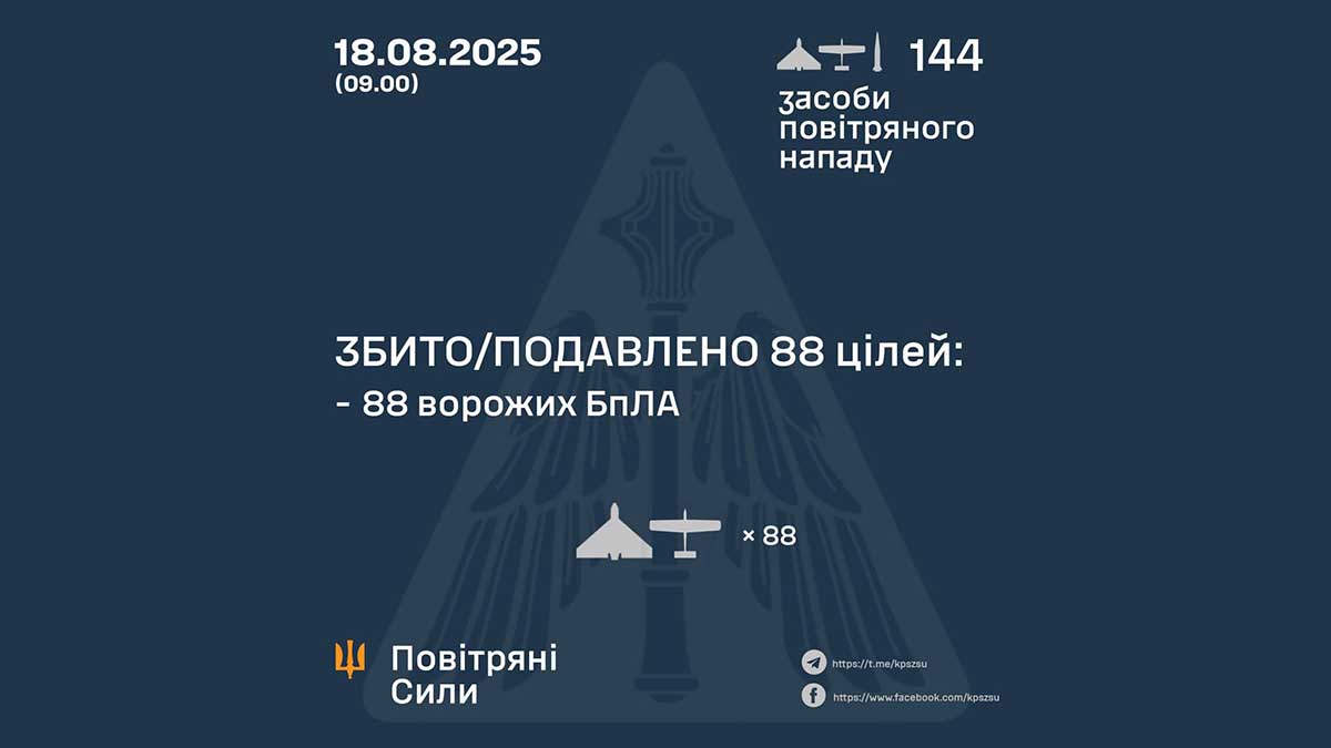 У ніч на 18 серпня 2025 року Росія атакувала Україну 140 дронами та 4 балістичними ракетами.