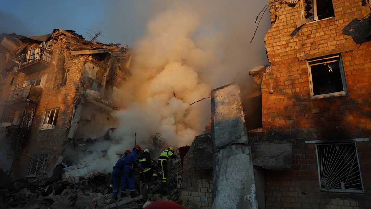 Після масованого обстрілу Києва рятувальники продовжують розбирати завали зруйнованих житлових будинків. За даними МВС України, підтверджено загибель щонайменше восьми людей, серед них одна дитина. Десятки киян отримали поранення, під руїнами досі можуть залишатися люди.