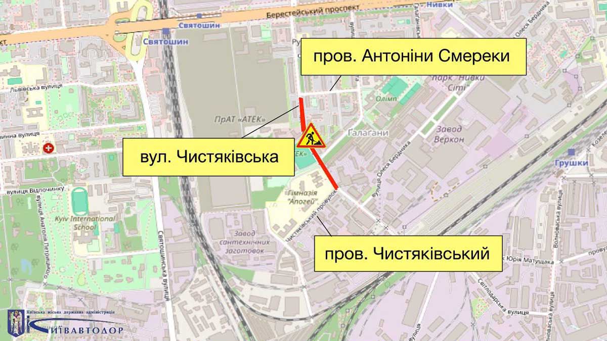 У Святошинському районі обмежать рух Чистяківською вулицею з 2 до 7 вересня