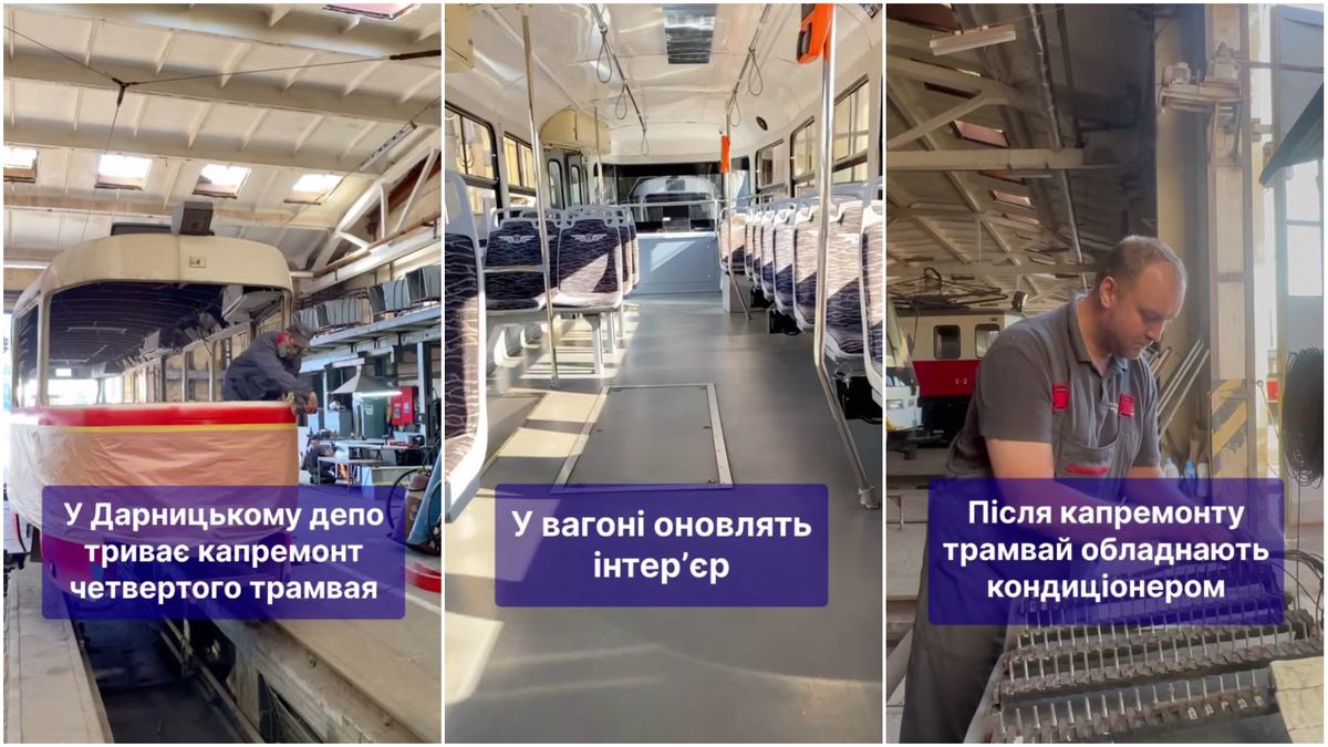 У Києві триває оновлення міського електротранспорту: у Дарницькому депо капітально ремонтують уже четвертий трамвай типу «Татра Т3» від початку року. Після відновлення вагони отримають новий салон, системи безпеки та кондиціонери. Загалом до кінця 2025 року у столиці планують оновити десять трамваїв.