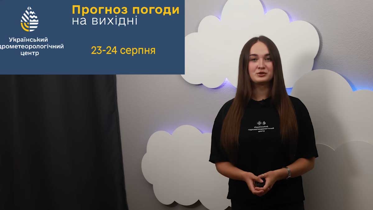 У вихідні 23–24 серпня в Україні очікуються дощі з грозами, місцями град і шквали до 20 м/с. У суботу негода охопить більшість центральних, південних та східних областей, температура вдень коливатиметься від 17 до 22°, на південному сході — до 31°. У неділю в країні збережеться дощова погода з подальшим похолоданням.