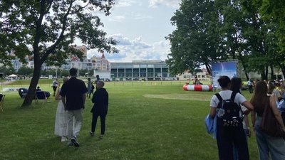 Поруч із гольф-центром на Оболоні, який нещодавно придбала Київська школа економіки (KSE), з’явився відкритий літній кінотеатр. Локацію облаштували за місяць — із проєктором і пуфиками, як і обіцяли місцевим мешканцям. Як повідомив президент KSE Тимофій Милованов, ідея втілюється поступово: наразі ще немає достатньо великого екрану, надійної конструкції для вітряної погоди чи безпечного укриття.