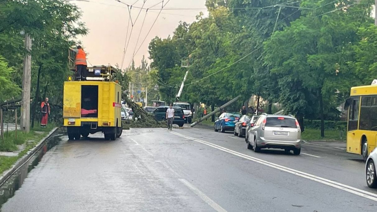 Унаслідок сильної зливи та поривів вітру ввечері 8 червня у Києві зафіксовано значні пошкодження в Шевченківському та Святошинському районах, передає «Вечірній Київ». Багато дерев повалено, рух транспорту на низці вулиць заблоковано. Зокрема, проблеми виникли на вулицях Щербаківського, Стеценка, Турчина та Мрії. Через падіння дерев на вулиці Щербаківського призупинено курсування тролейбусів.