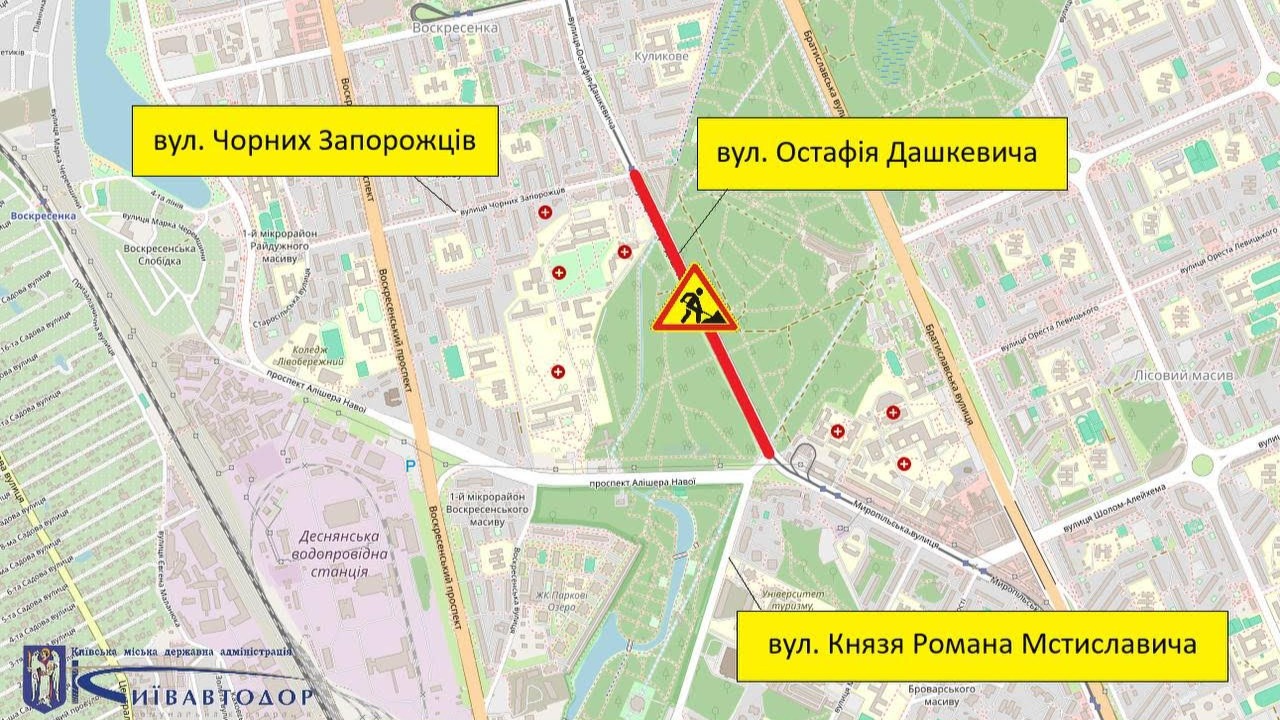 У Києві з 23 травня до 5 червня частково обмежать рух транспорту на вулиці Остафія Дашкевича — одній з магістралей лівого берега столиці. Як повідомив Офіційний портал Києва, йдеться про ділянку від вулиці Чорних Запорожців до перехрестя з вулицею Князя Романа Мстиславича.